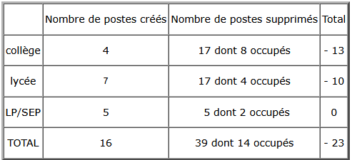 Les documents préparatoires indiquaient un solde négatif de 24 postes, tandis que l’enveloppe départementale s’établit à -27 emplois.