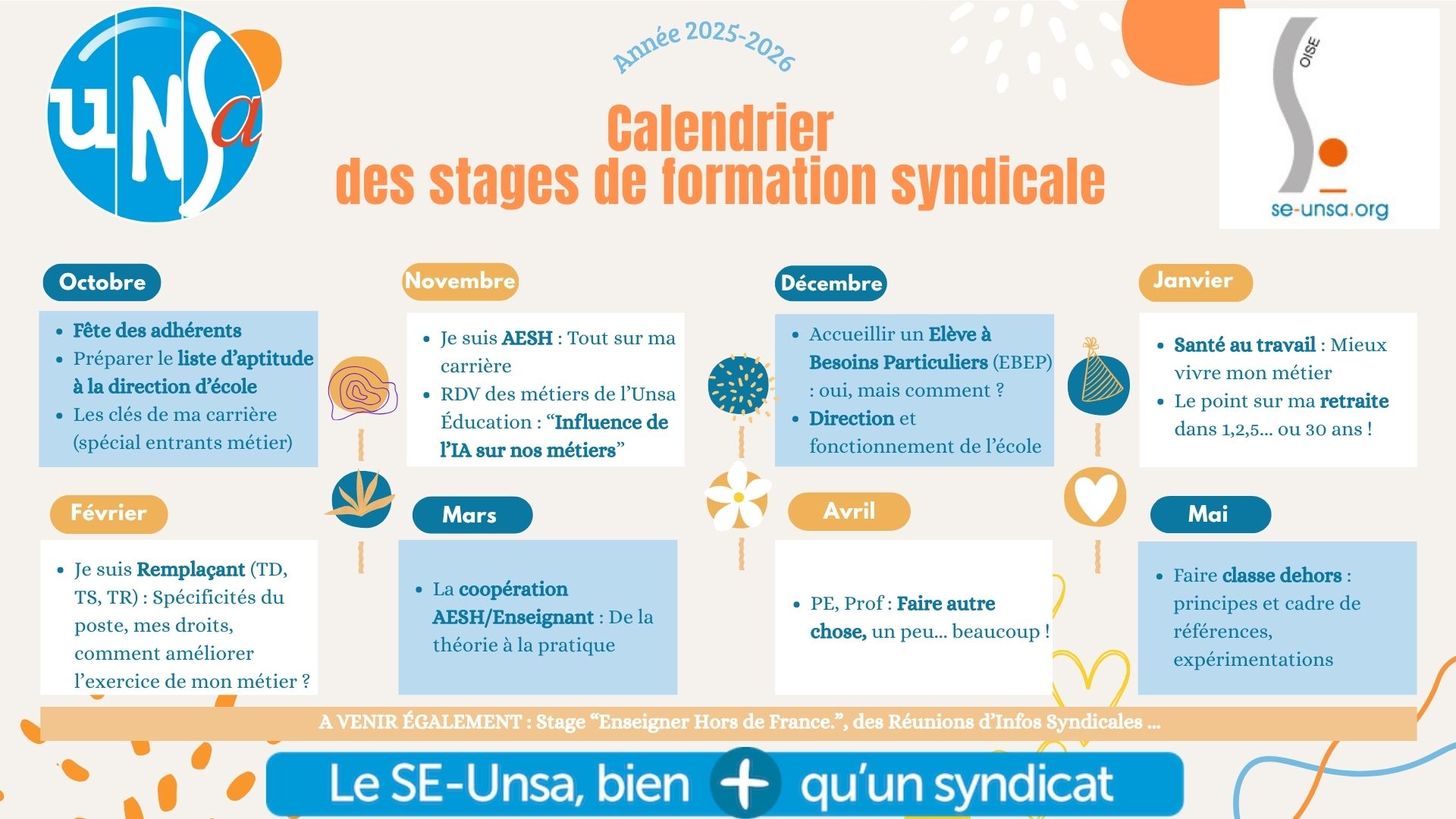 NB: Le stage « Direction et fonctionnement de l’école » aura lieu en mars 2026 et non en décembre 2025.
