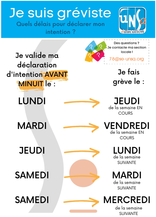 Attention: Une déclaration d’intention de grève n’entraine pas l’obligation de faire grève. Un·e collègue peut, pour des raisons qui lui sont propres et qu’il·elle n’a pas à justifier à sa hiérarchie, changer d’avis et venir travailler ce jour-là. (Dans ce cas, il sera indispensable de s’assurer de la communication de cette décision aux familles.)