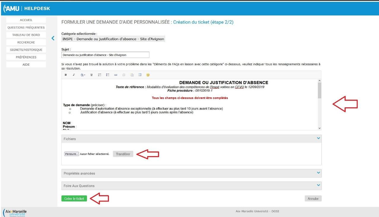 Les stagiaires ont également un formulaire supplémentaire en cas de temps INSPE.