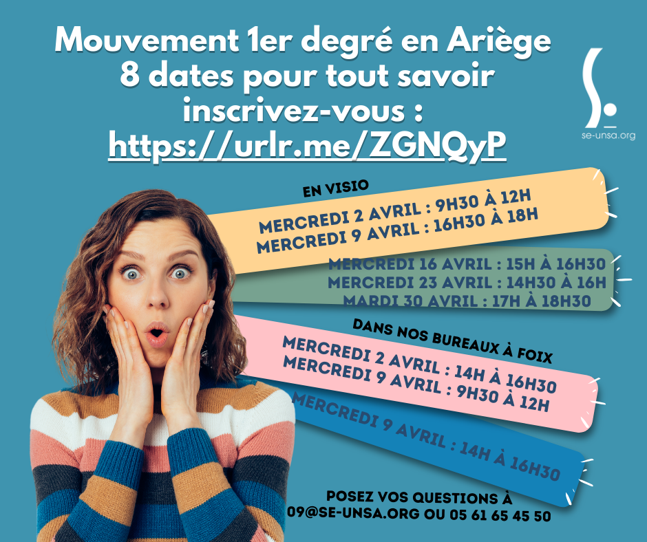 L’équipe départementale du SE UNSA 09 répond à vos questions, vous conseille, est à vos côtés tout au long des étapes du mouvement :