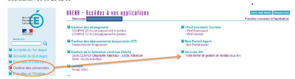 Comment contacter ou solliciter un rendez-vous : via la plateforme numérique PROXIRH, dédiée au service de GRH de proximité, accessible par le portail de services ARENA (Gestion des personnels > Services RH)