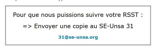 Le SE-Unsa demande que chaque RSST soit visé et que chaque collègue ainsi que les instances qui les représentent puissent avoir connaissance des suites données.