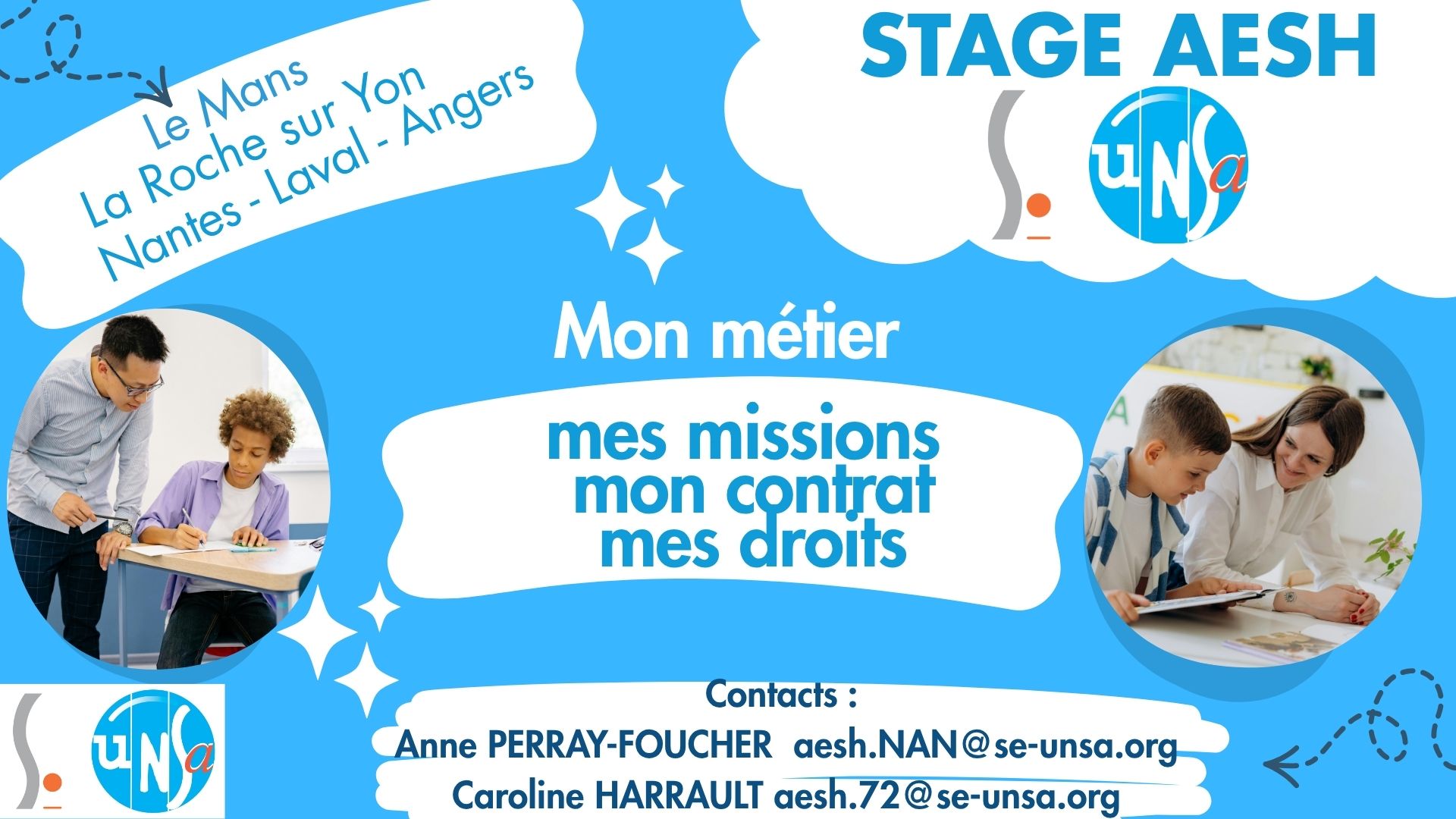 Secteur AESH académie de Nantes, contacts : aesh.NAN@se-unsa.org ou aesh.72@se-unsa.org