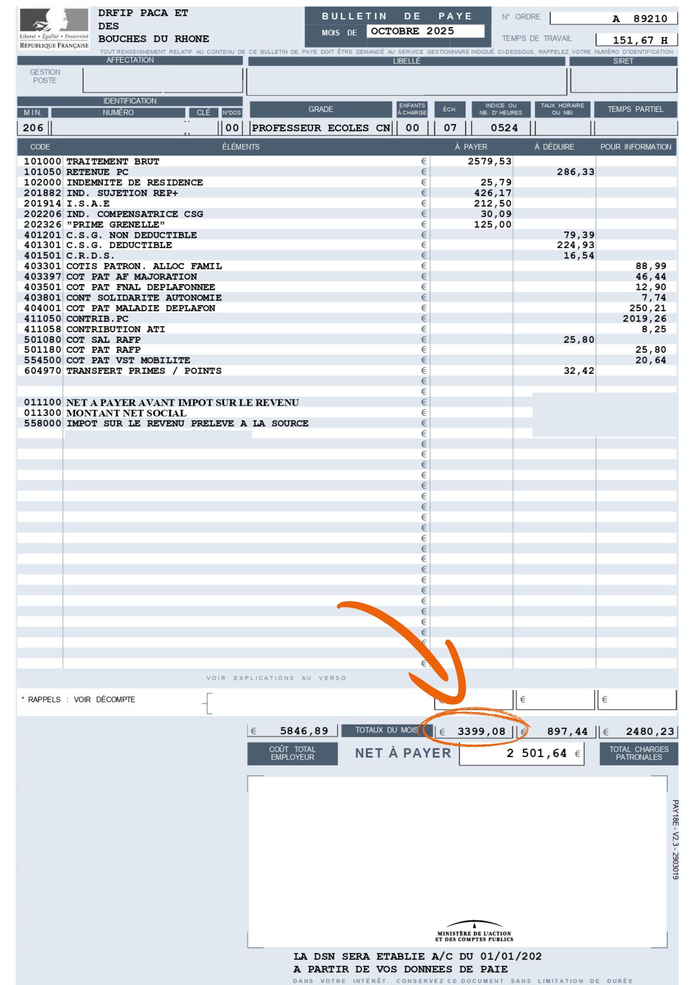 Le montant de votre rémunération brute est le montant noté en bas de la colonne À payer de votre bulletin de salaire.