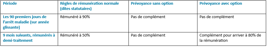 Dans le cas où vous choisissez de prendre la prévoyance MGEN, nous vous conseillons de la prendre avec option, en effet celle ci complète les arrêts maladie ordinaires de plus de 90 jours.