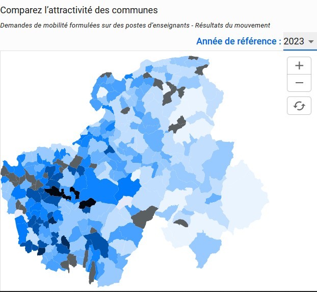 Taux de demandes par commune = Nombre de vœux précis ou géographiques formulés sur la commune / nombre d’écoles
