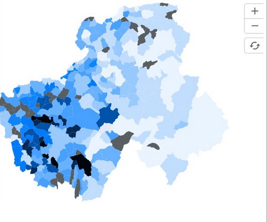 – Zones en bleu : Plus la couleur est foncée plus ce taux est élevé.