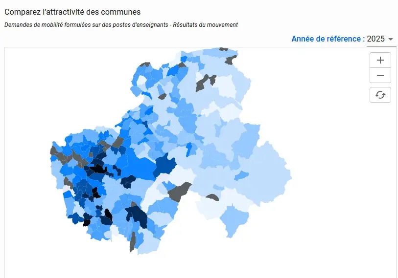 Taux de demandes par commune = Nombre de vœux précis ou géographiques formulés sur la commune / nombre d’écoles