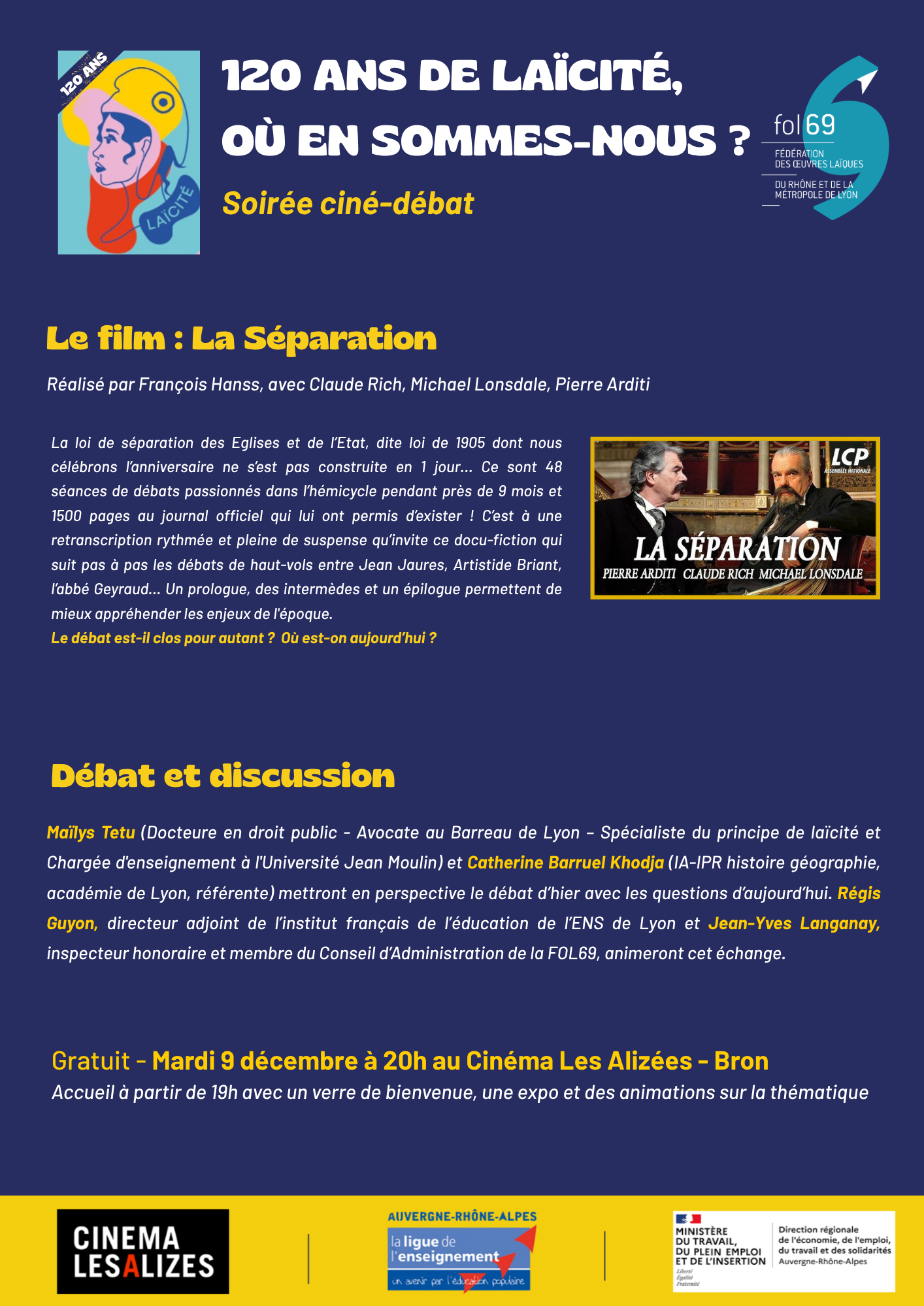 - un temps de débat et discussion avec Maïlys Tetu (Docteure en droit public, avocate au Barreau de Lyon, Spécialiste du principe de laïcité et chargée d’enseignement à l’Université Jean Moulin) et Catherine Barruel Khodja (IA-IPR histoire-géographie, académie de Lyon, référente laïcité).