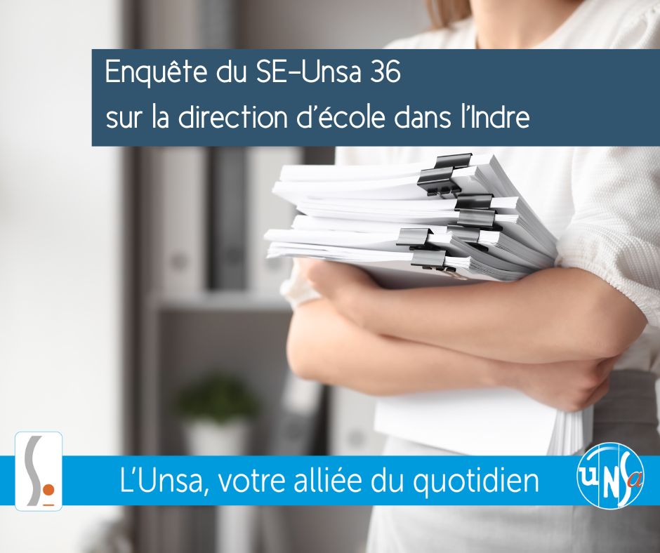 En prévision d’une audience avec le Dasen (lire notre compte rendu), le SE-Unsa 36 a diffusé une enquête auprès des directrices et directeurs d’école du département ces dernières semaines pour rendre compte de leur quotidien et de leurs difficultés.