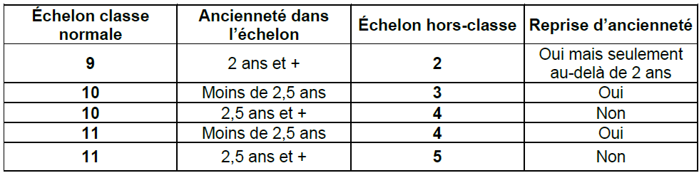 Le grade de la hors-classe est accessible aux agents comptant au 31 août de l’année d’établissement du tableau d’avancement au moins deux ans d’ancienneté dans le 9ème échelon de la classe normale de leur corps. Tous les personnels enseignants des premier et second degrés, d’éducation et les psychologues de l’éducation nationale ont vocation à dérouler une carrière complète sur au moins deux grades à un rythme plus ou moins rapide, sauf dans des cas exceptionnels où une opposition à promotion est formulée par le recteur/IA-DASEN. - Impact sur le parcours