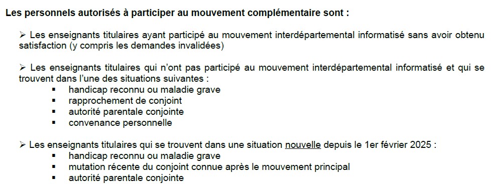Les INEAT-EXEAT s’adressent aux collègues qui n’ont pas obtenu satisfaction aux permutations informatisées mais aussi à ceux qui n’avaient pas participé aux permutations informatisées. Dans ce cas, ils devront justifier leur demande d’INEAT-EXEAT (rapprochement de conjoint, autorité parentale conjointe, handicap,maladie grave, mutation du conjoint) ou du changement de situation.