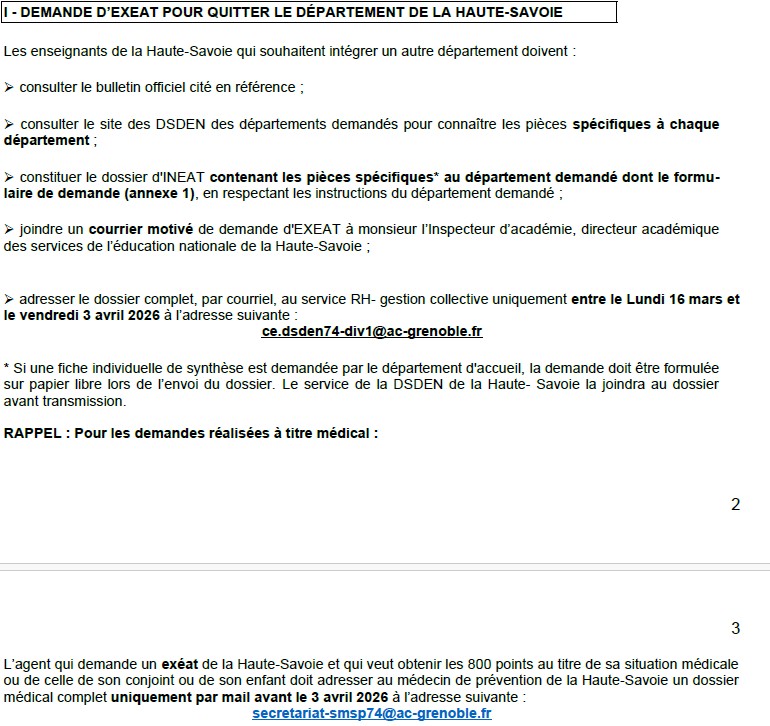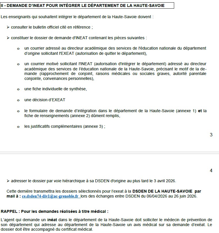 - Dossier (EXEAT et INEAT) avec formulaire type à envoyer systématiquement à la DSDEN de son département d’origine sous forme dématérialisé