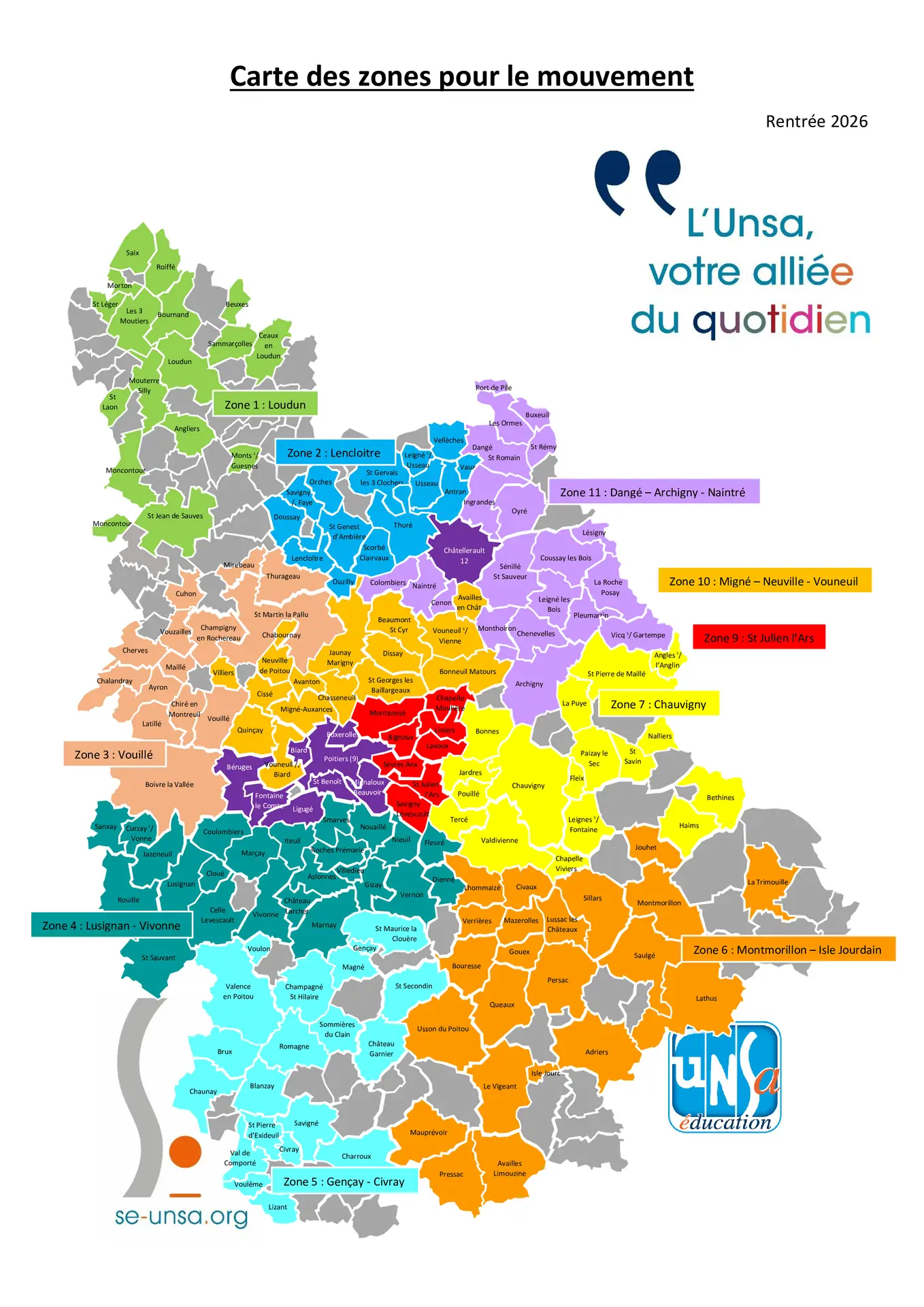 Carte interactive pour le mouvement départemental des enseignants premier degré de la Vienne