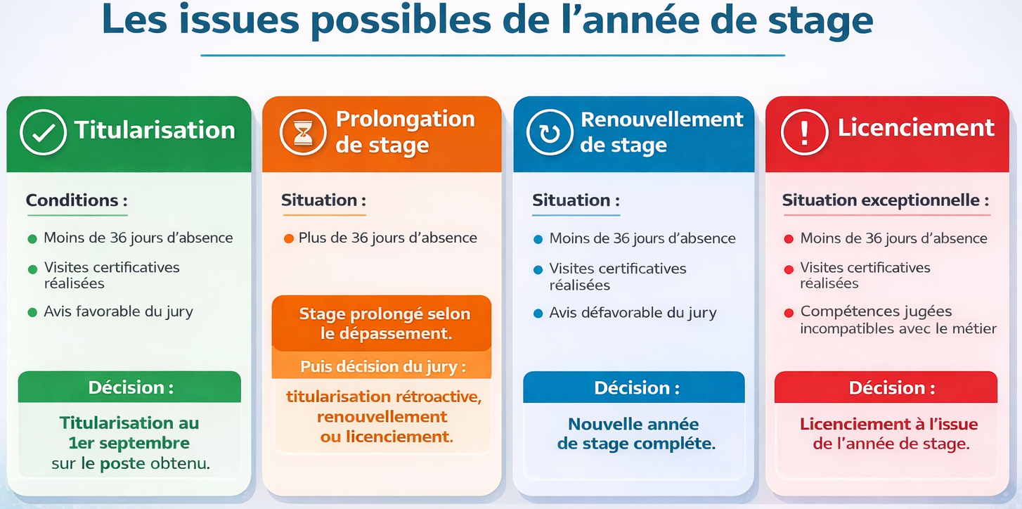 ➡️ Titularisation, renouvellement, prolongation de stage… que peut-il se passer à la fin de l’année de stage ?
