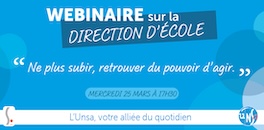 Dans le cadre de sa Semaine de la Direction, le SE-Unsa vous propose un temps d’échange en ligne pour prendre du recul sur la réalité du métier et partager des pistes afin de retrouver des marges de manœuvre dans l’exercice de la direction. Inscrivez-vous au webinaire de la Semaine de la direction d’école et venez nourrir la discussion avec vos expériences de terrain !