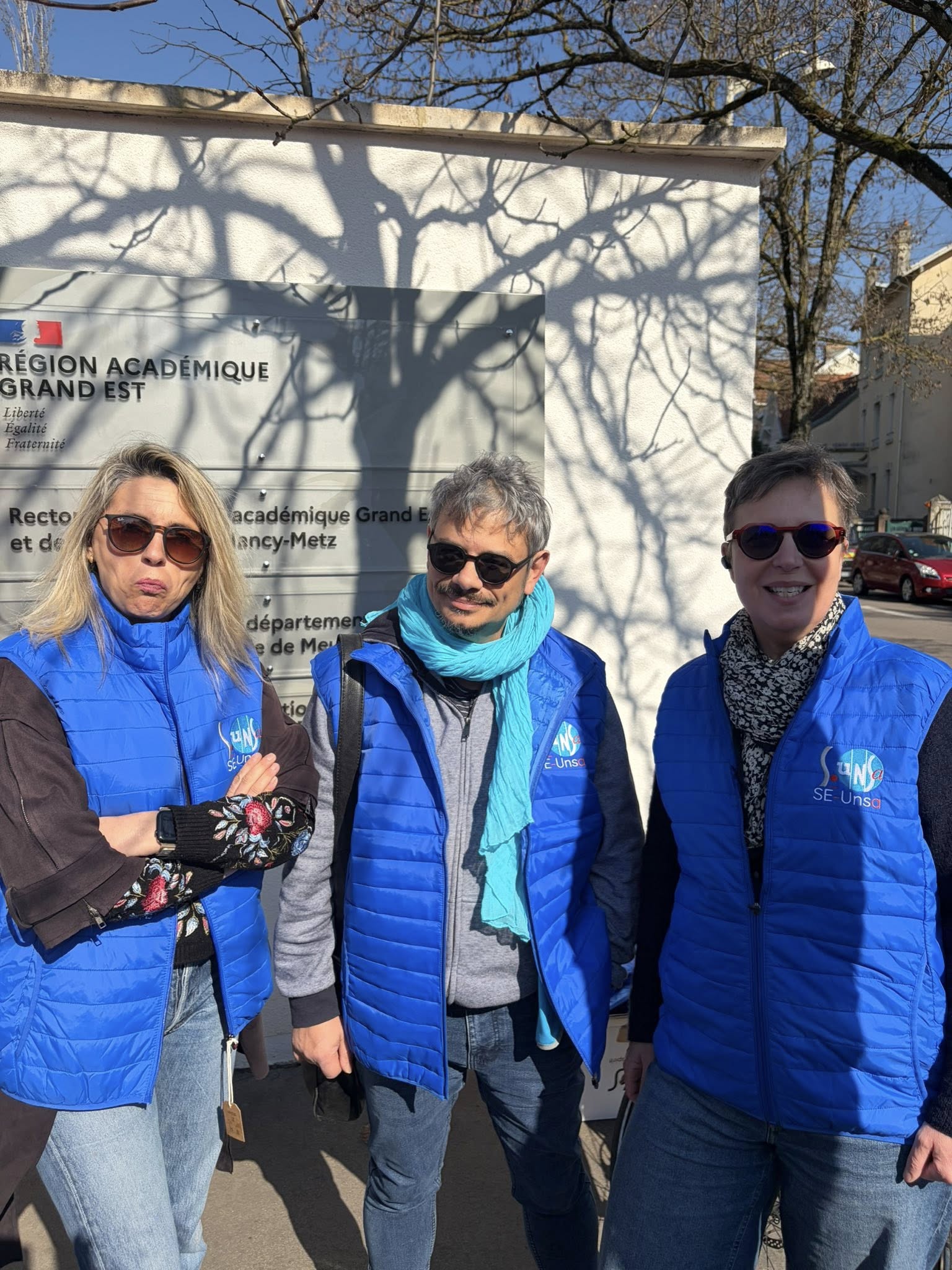 Plusieurs collègues du Se Unsa se sont déplacés mercredi dernier devant le rectorat pour la manifestation intersyndicale annoncée pour protester contre les trop nombreuses suppressions de postes dans le second degré de notre académie.