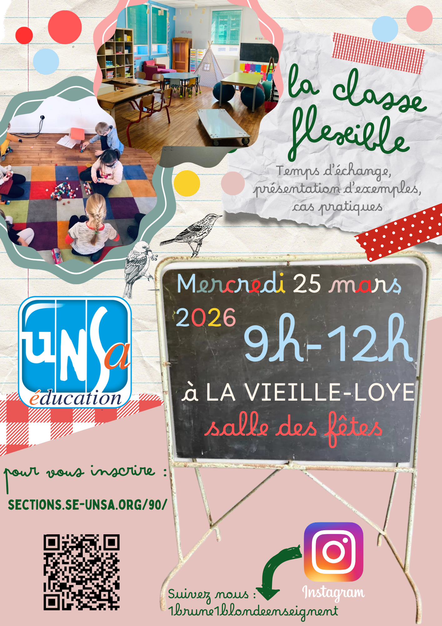 Le SE-Unsa 39, en collaboration avec le SE-Unsa 70, te propose une Animation sur la thématique de la flexiclasse. Viens découvrir une nouvelle façon de travailler…