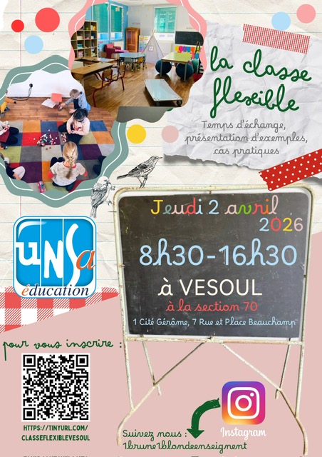 Le SE-Unsa 70, te propose un stage sur la thématique de la flexiclasse. Viens découvrir une nouvelle façon de travailler…