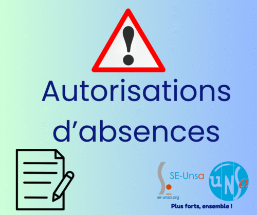 Autorisations d’absence : vigilance et mobilisation du SE-UNSA La note départementale et ses 3 annexes concernant les demandes d’autorisation d’absence pour les enseignant.es du 1er degré sont parues sur PARTAGE. 👉- CLIC […]