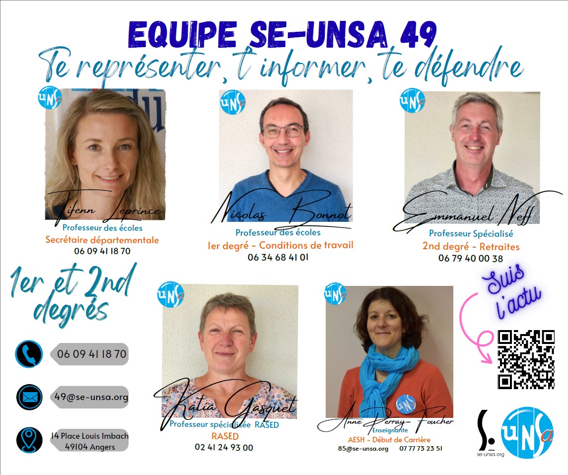Contacter la section 74 74@se-unsa.org Secrétaire Départemental : Emmanuel FUSS Elu en CAPD, CSA-SD, CDEN, formation spécialisée en condition de travail 74@se-unsa.org 06 16 90 33 54 Co-trésoriers Marion Layat […]