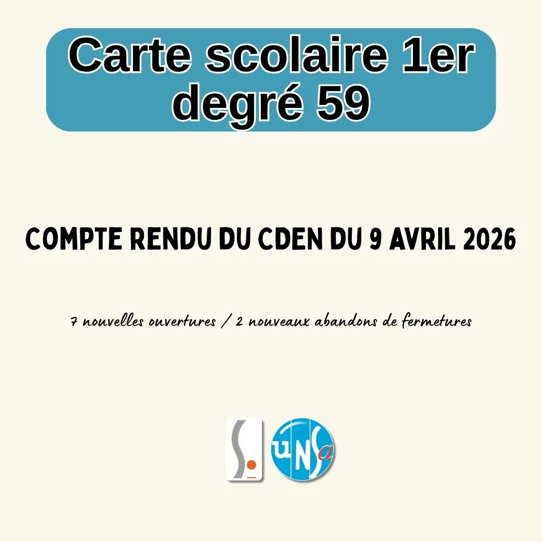 Notre déclaration de CSA-D ICI Notre déclaration liminaire de CDEN ICI Aujourd’hui avait lieu la dernière instance des opérations de carte scolaire : le CDEN. C’est l’instance qui clôture les […]